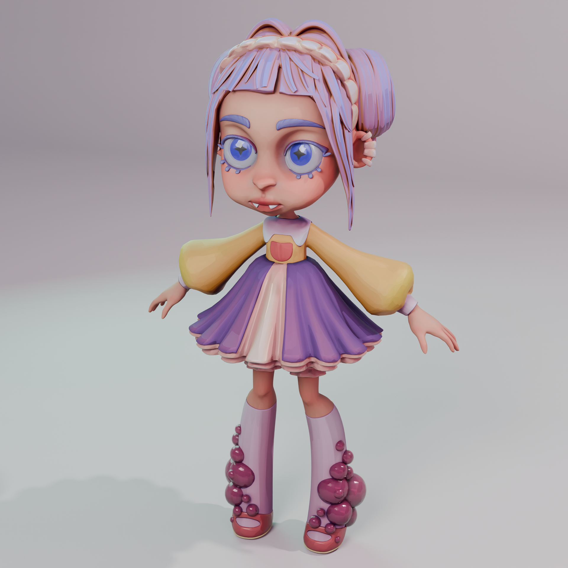 Although by current time I haven’t made an animation with this model, I think it was valuable experience for making a functional 3D character from scratch - from concept art, through modeling and retopology, to shading and texturing.
